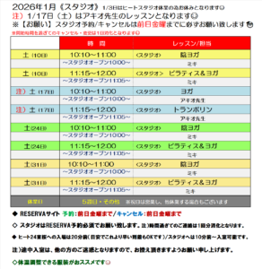 【お願い】(土曜)スタジオ 予約/キャンセル は前日(金曜)までに必ずお願い申し上げます。